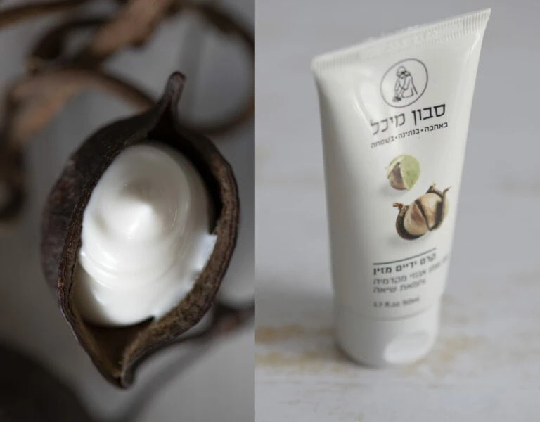 קרם ידיים מזין עם גוטה קולה, קמומיל, שמן אגוזי מקדמיה וחמאת שיאה.