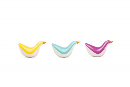 מיני ברווז מגיעים בשלושה צבעים – צהוב, סגול ותכלת.