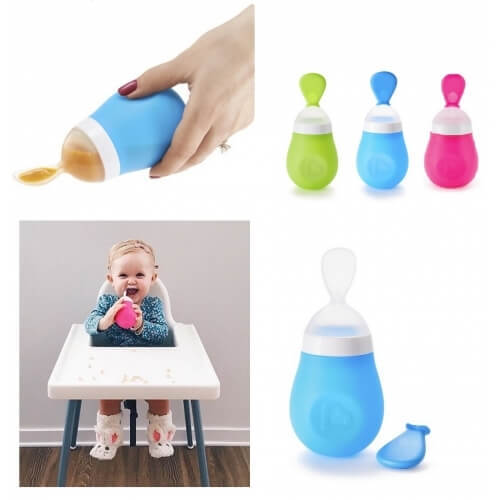 בקבוק רך עם כפית להאכלה בלחיצה.