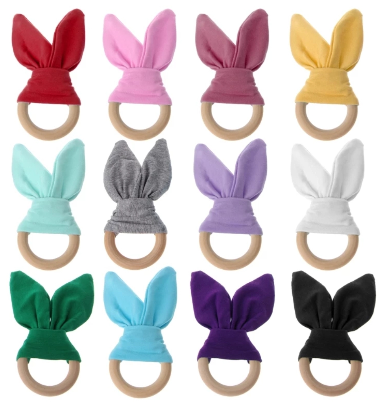 נשכן מעץ ללא לכה עם אוזני ארנב רכות, נעימות ומרשרשות, אשר ניתנות להסרה לכביסה