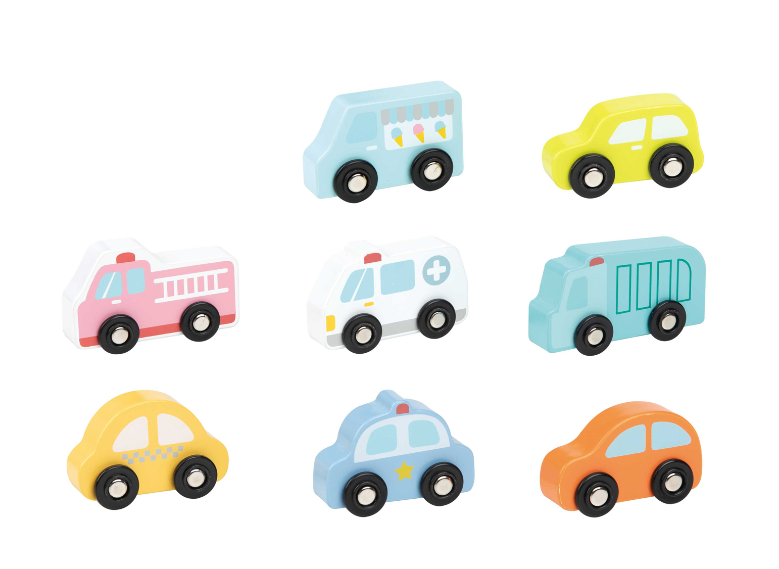 מגוון רכבים קטנים וצבעוניים מעץ לבחירתך (המחיר הוא ליחידה)
